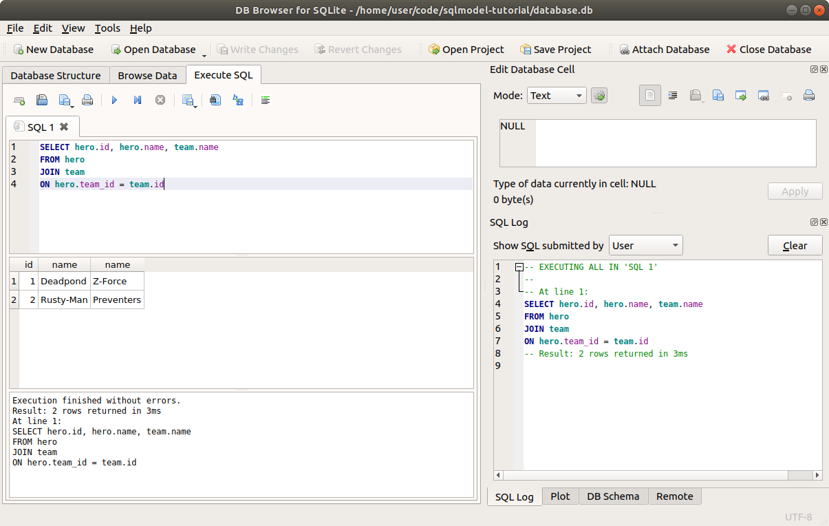 INFO Engine SELECT hero.id, hero.name, hero.secret_name, hero.age, hero.team_id